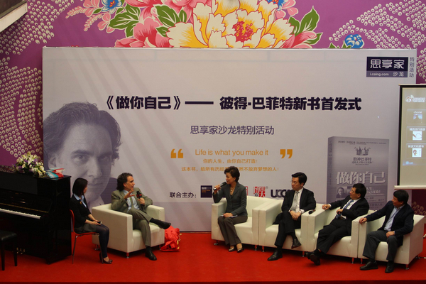 【财新网】(记者 张新名)3月14日下午,财新网思享家沙龙特别活动、“股神”之子彼得•巴菲特先生的自传新书《做你自己》(财新丛书之一)首发式在北京尤伦斯当代艺术中心举行,阳光媒体主席杨澜主持,嘉宾有财新传媒副总编辑杨大明、创新工场CEO李开复、真格天使基金公司徐小平、IDG资本创始合伙人熊晓鸽和中南博集天卷文化传媒有限公司董事长黄隽清等。