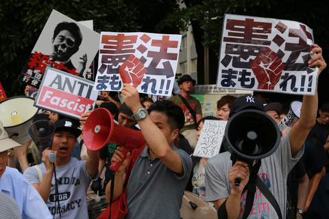 6月29日下午2时10分左右,在东京都新宿区西新宿JR新宿站南口的过街天桥MYLORDDECK上,一位60岁左右的男子坐在过街天桥上讲演,他表示反对日本政府修改宪法解释,解禁集体自卫权,然后他点燃了手里装满汽油的瓶子自焚,新宿站的警备员报告警方,警方赶到后发现该男子已烧成重伤,警方将在他恢复健康以后以涉嫌轻度犯罪对其进行调查。